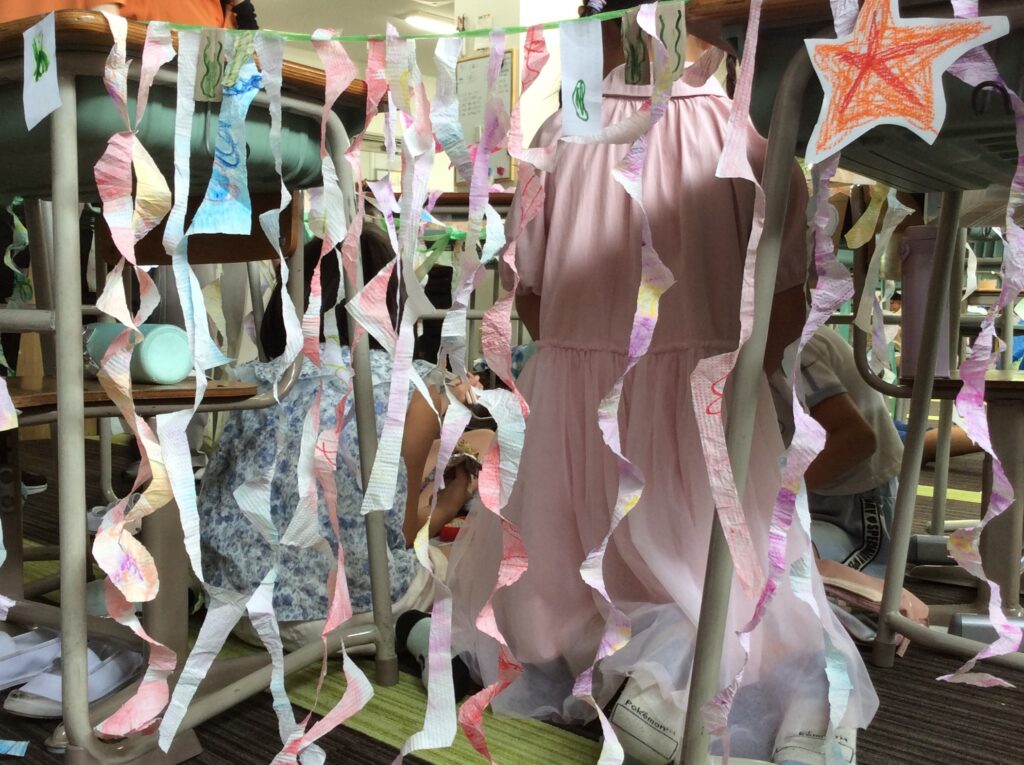まずは海の洞窟に見立てた秘密基地を作り、それから飾りつけ!